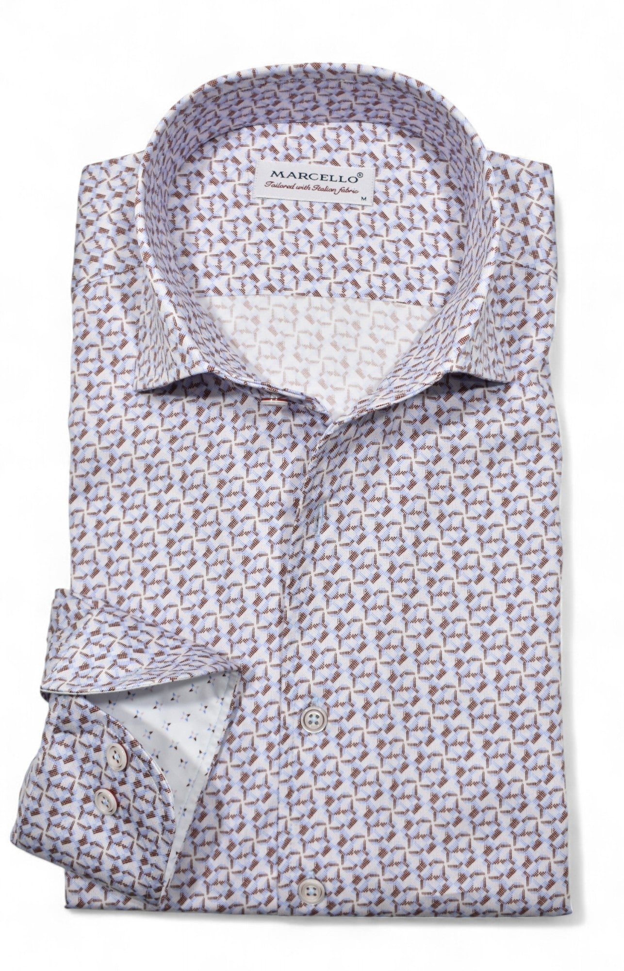 Marcello perfected one piece collar. Premium cotton fabrics, custom hand selected buttons and coordinated stitch detailing. Classic shaped fit.