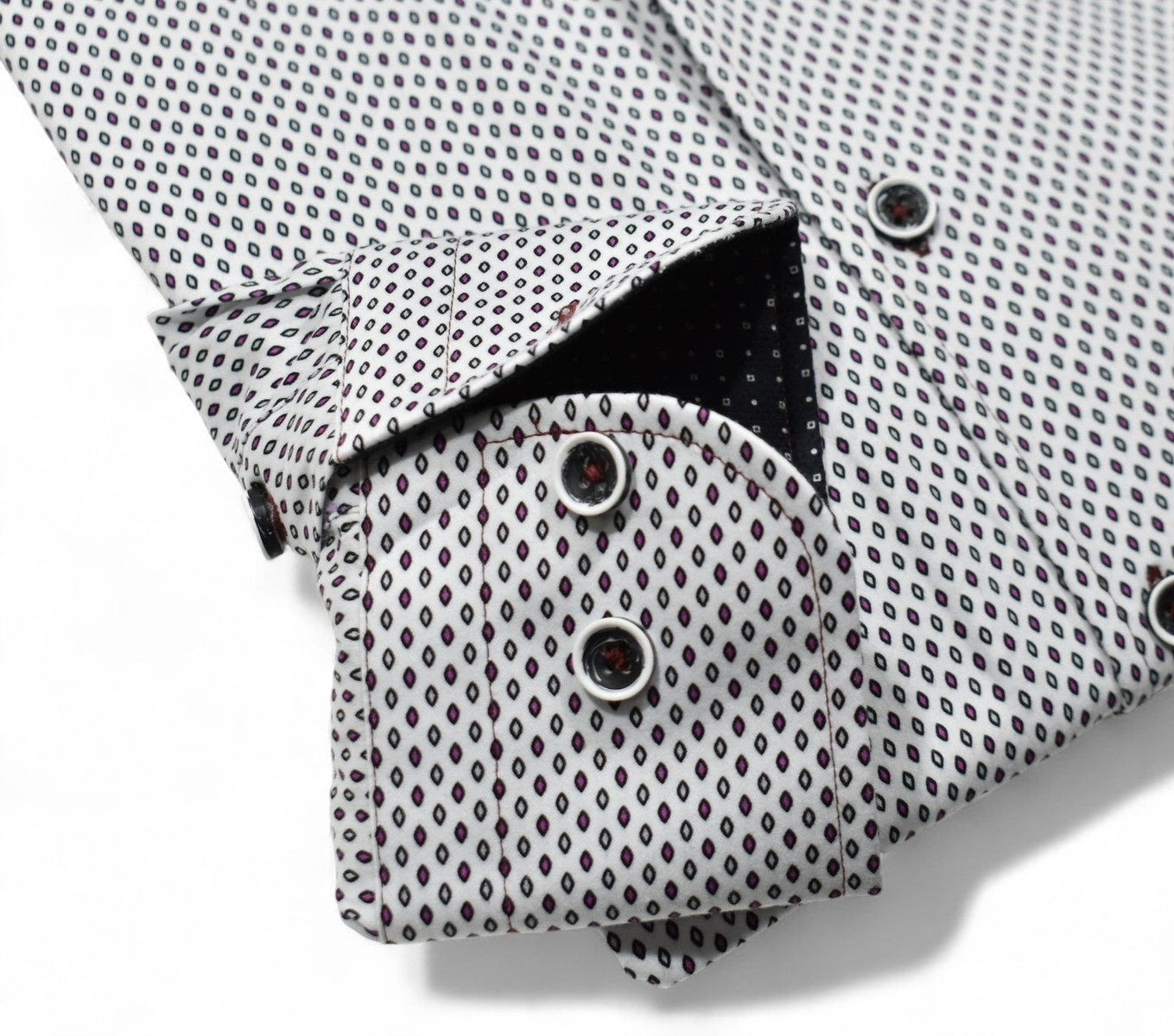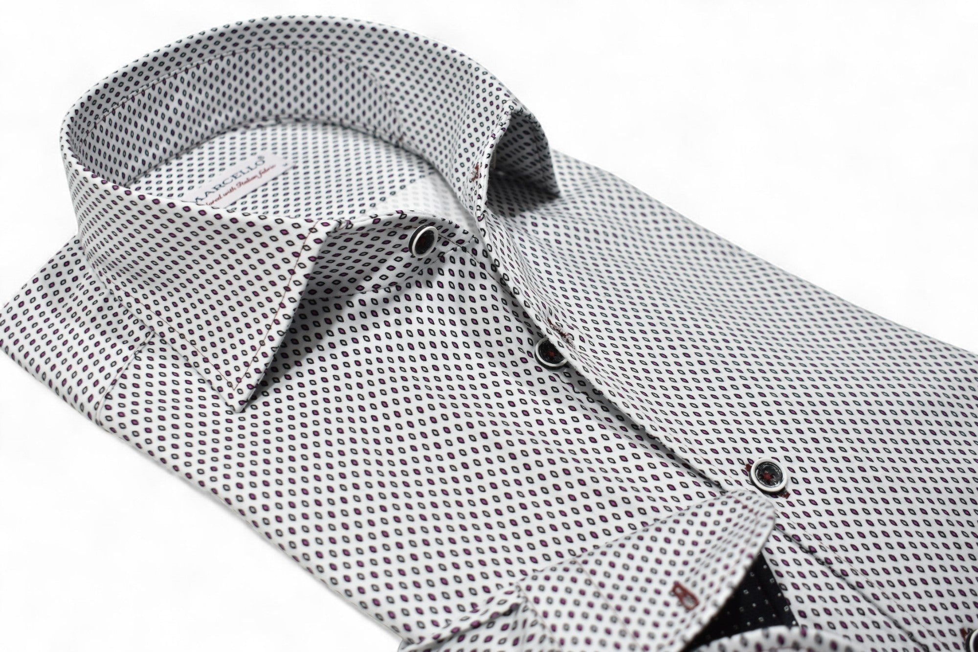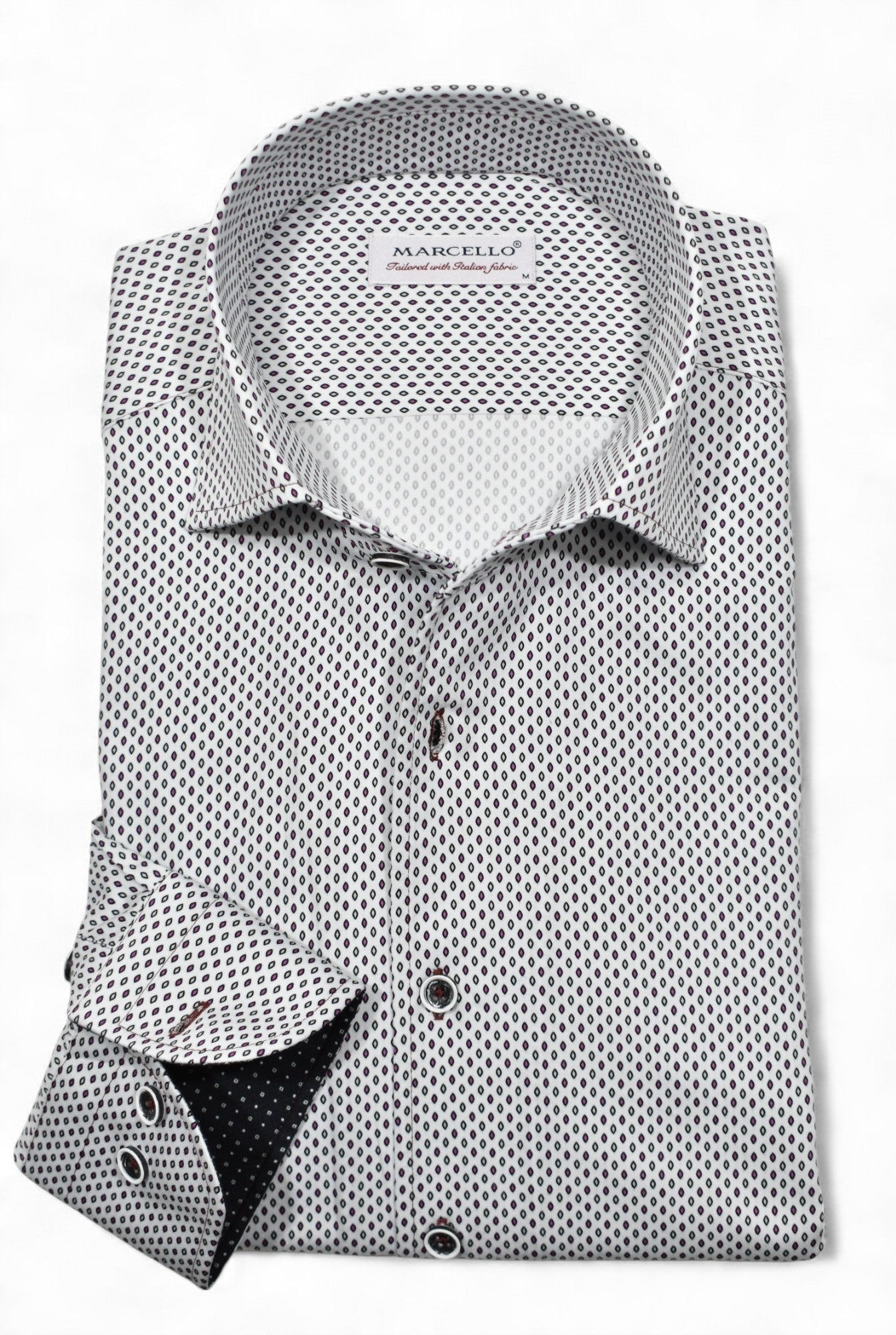Marcello perfected one piece collar. Premium cotton fabrics, custom hand selected buttons and coordinated stitch detailing. Classic shaped fit.