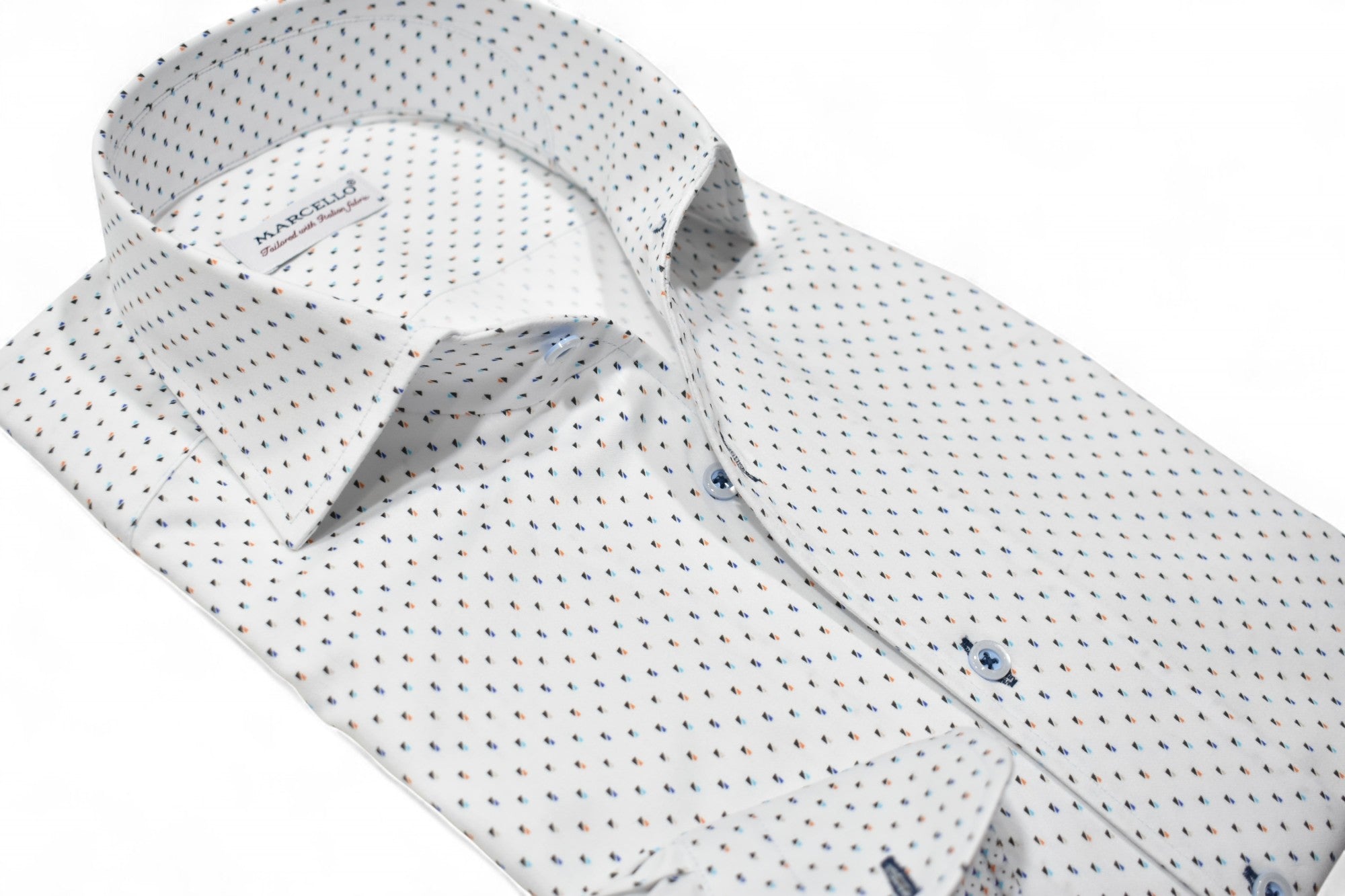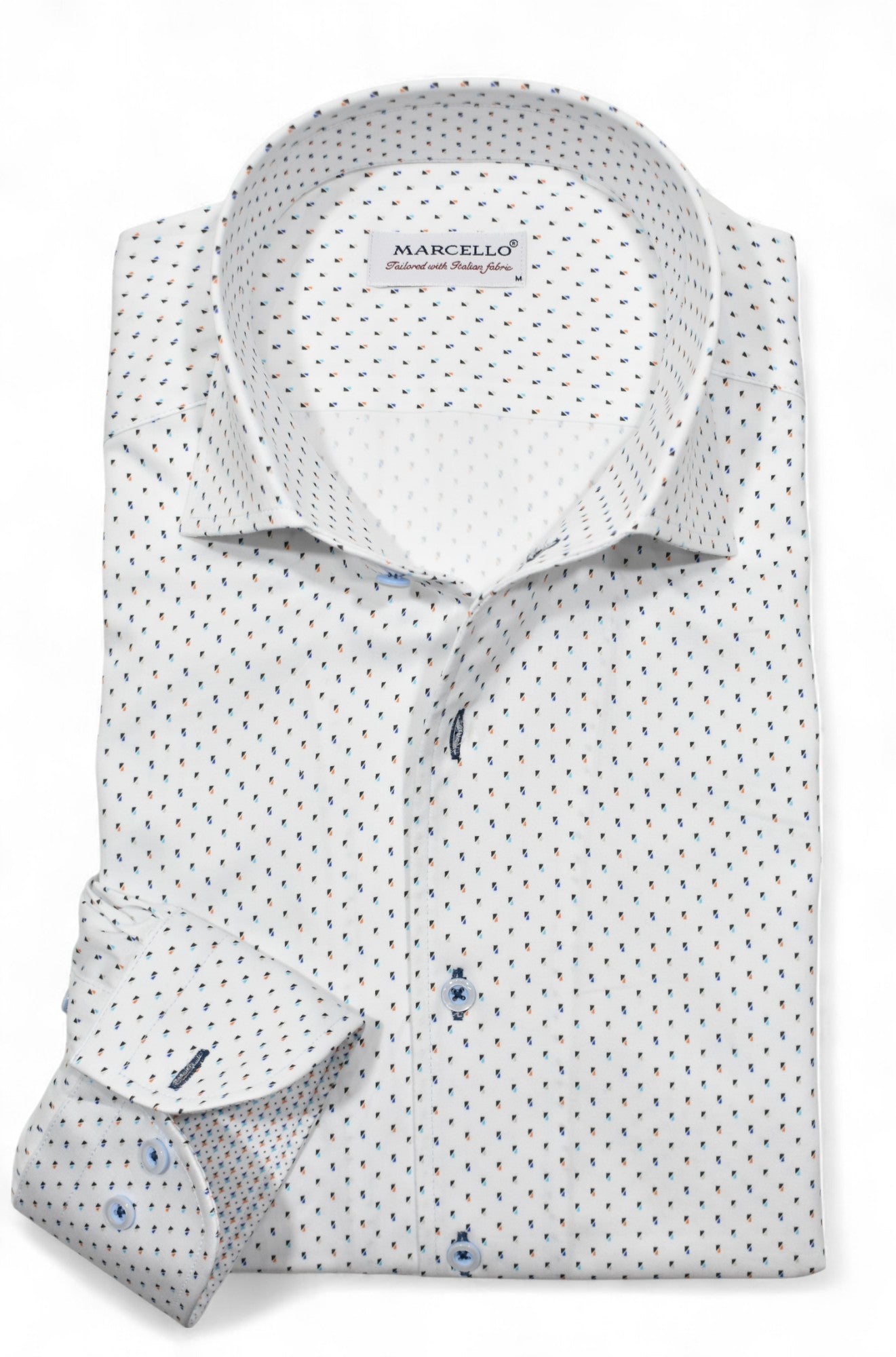 Marcello perfected one piece collar. Premium cotton fabrics, custom hand selected buttons and coordinated stitch detailing. Classic shaped fit.