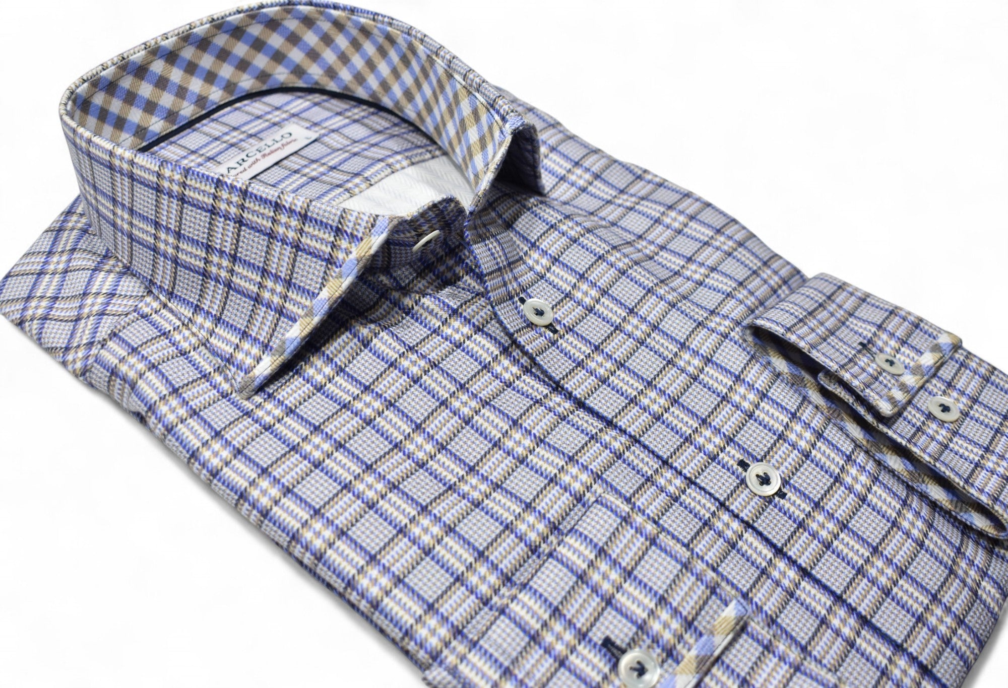 The Marcello Premium Shirt Collection features extra fine 100's 2ply fabrics from Italy that look and feel exceptional. Pair the rich premium fabrics with our perfected one piece collar for nothing short of the finest sport shirt in the market. Each shirt features mother of pearl buttons, crows foot button stitching, and enhanced packaging. Classic shaped fit.