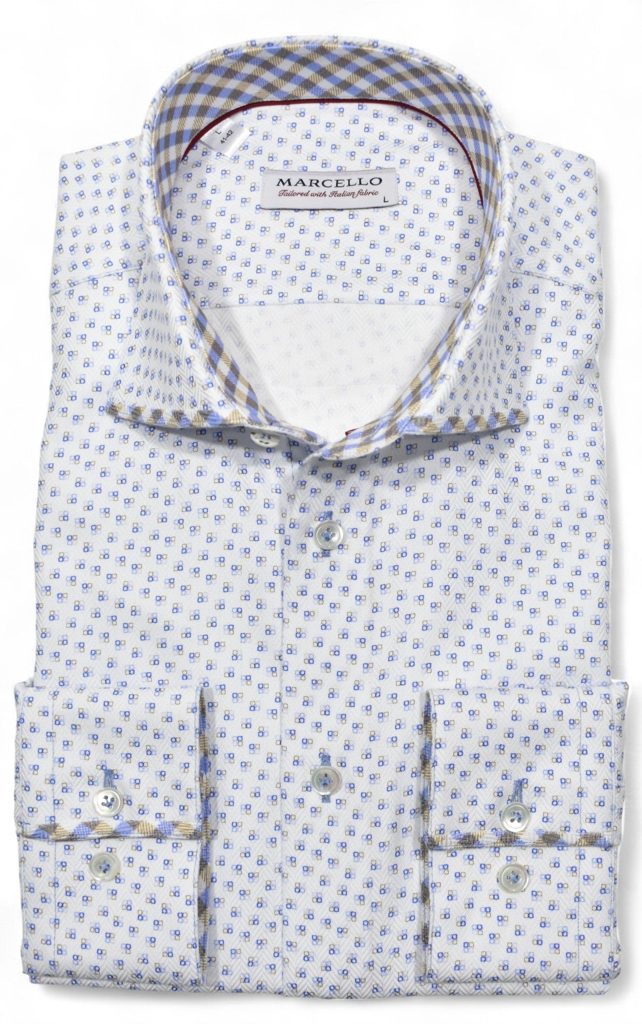 The Marcello Premium Shirt Collection features extra fine 100's 2ply fabrics from Italy that look and feel exceptional. Pair the rich premium fabrics with our perfected one piece collar for nothing short of the finest sport shirt in the market. Each shirt features mother of pearl buttons, crows foot button stitching, and enhanced packaging. Classic shaped fit.