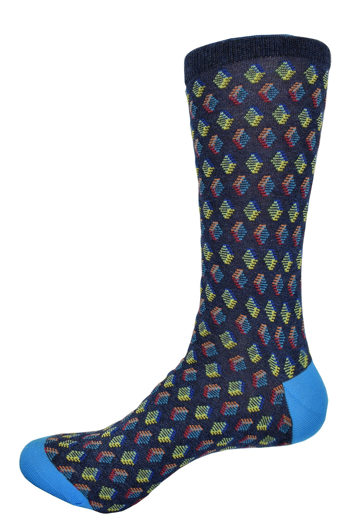 Denim 3D Block men's sock. Cotton nylon blend for comfort. One size.