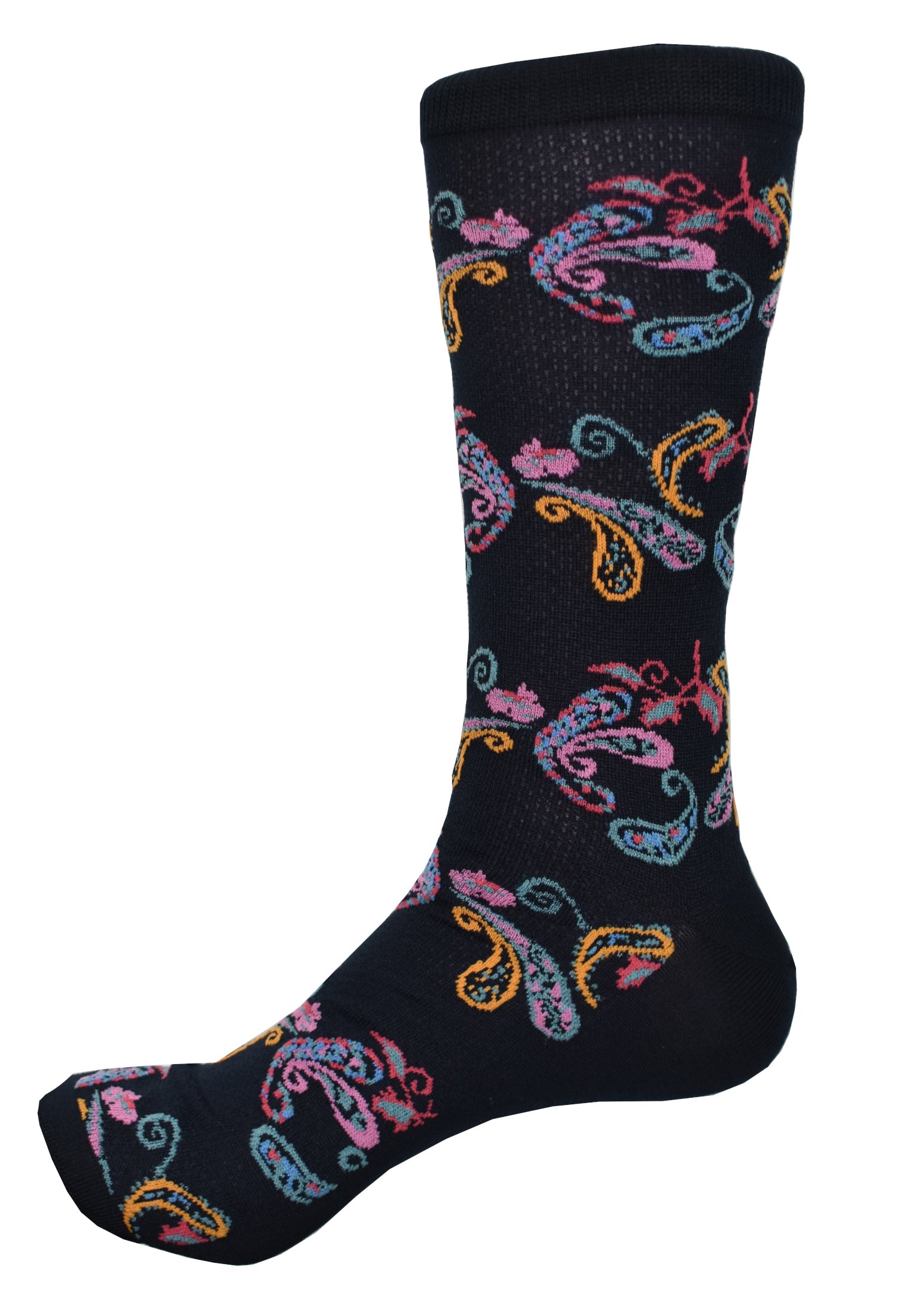 Classic Black base color with floating multi colored paisleys to create a fashion statement that is cool yet understated. Mercerized cotton with a touch of lycra for a soft comfort fit and feel.