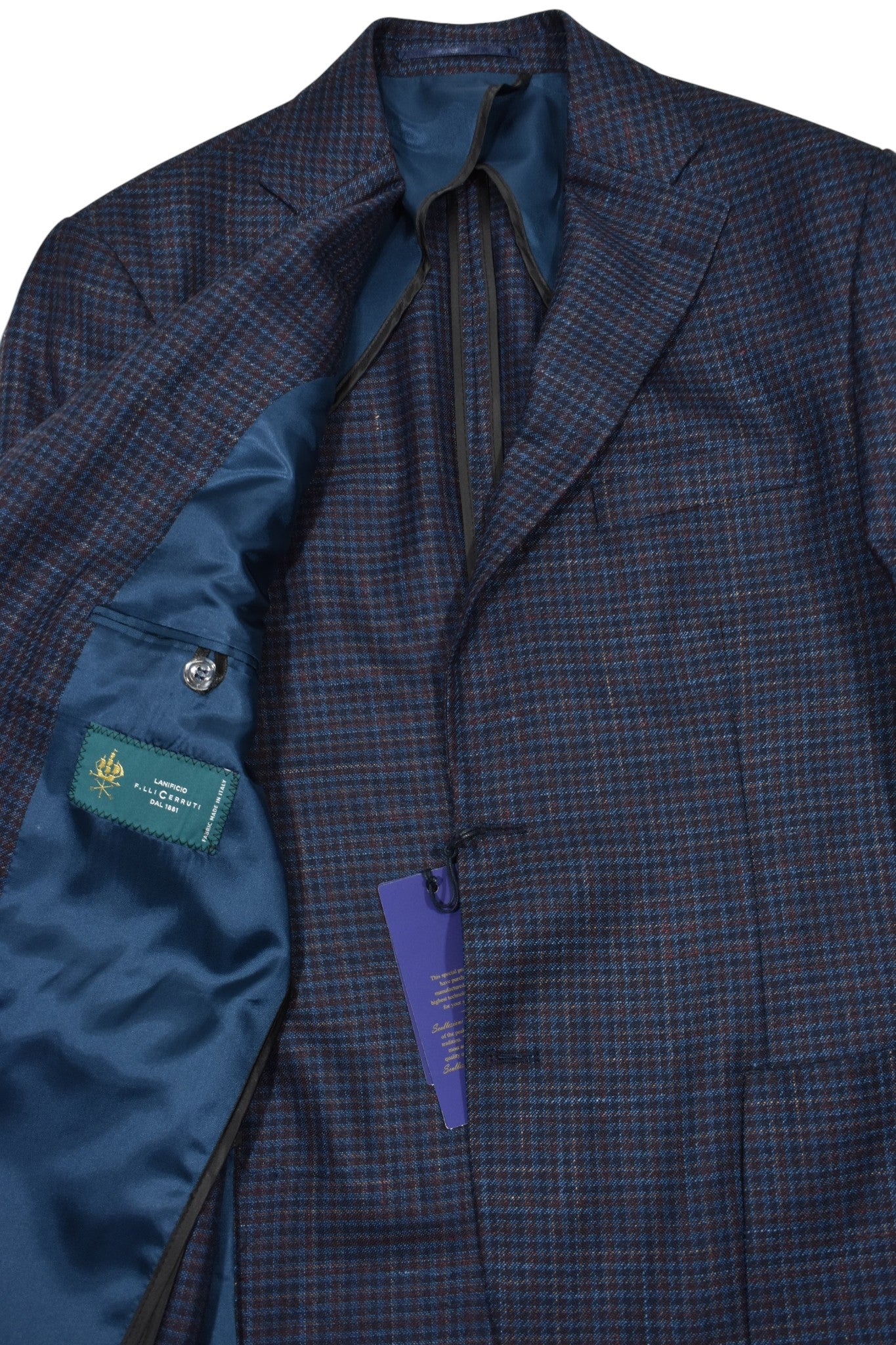 The Marcello Cerruti Sport Coat showcases rich, expertly woven Italian fabric in a striking two-color houndstooth pattern featuring navy, medium blue, and wine tones. Its unlined design with soft shoulders creates a lightweight, modern silhouette that effortlessly combines sophistication with contemporary flair. Perfect for making a bold yet refined statement in any setting.