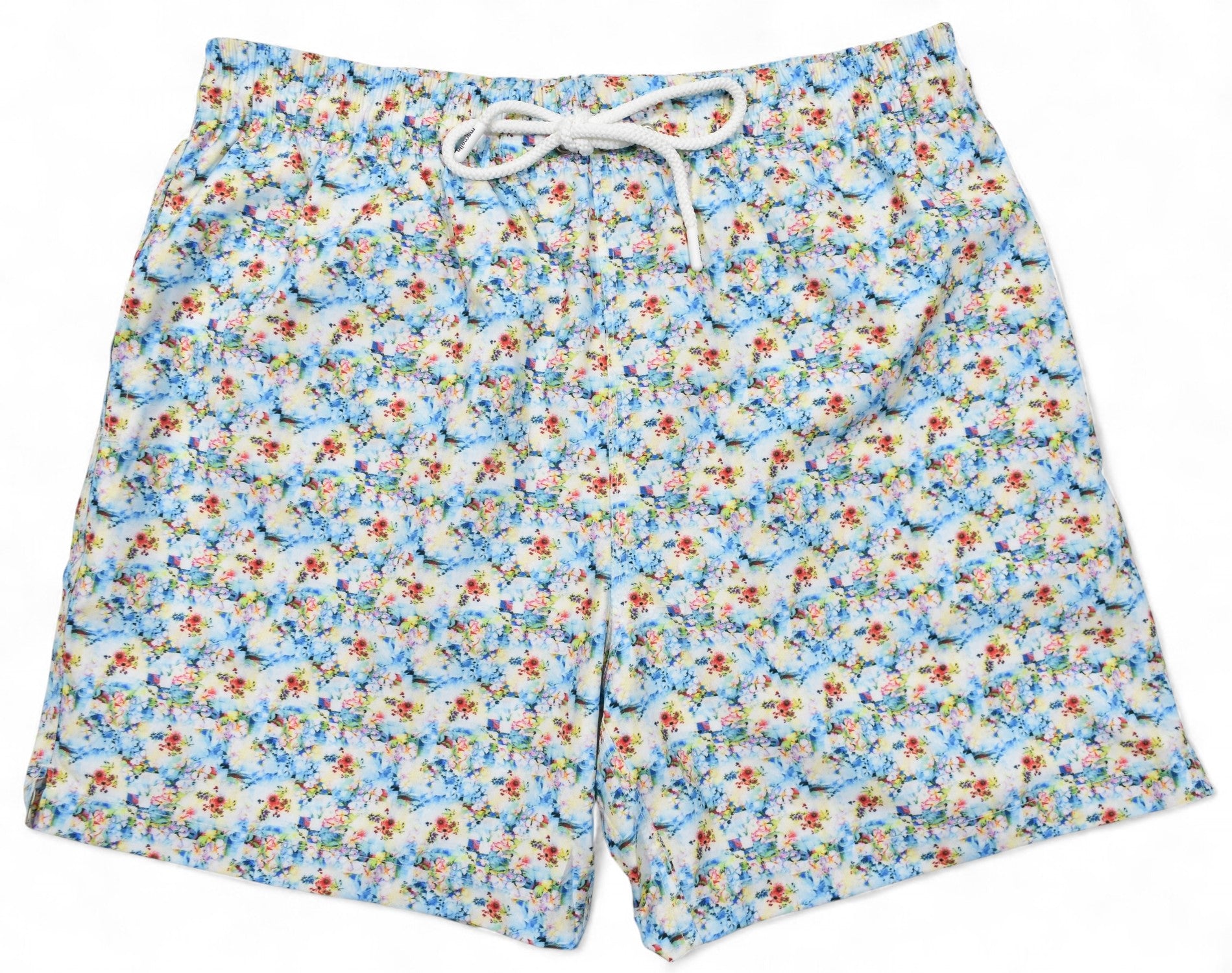 Soft quick dry fabric with a classic mesh lining. Front drawstrings with metal Marcello engraved ends. Front draw string grommets to allow tying outside or inside. Back center seam upper grommets to release air. Back pocket with button hole to release water. Delivered in a solid navy travel bag, with Marcello stamped in white, red draw strings and white stitching. Classic fit, 5.5" length.
