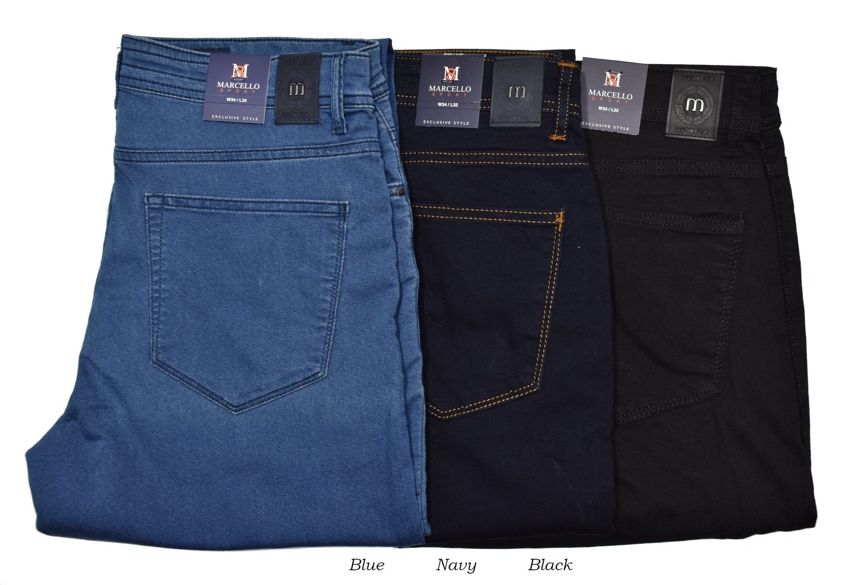 Stay comfortable and stylish with the LP10 Marcello Feather Weight Stretch Jeans. The lightweight design combined with stretch fabric makes them ideal for natural movements. The medium rise and classic fit are updated with a tapered leg, perfect for contemporary looks. Choose from Black, Denim and Navy, in sizes 30-35 (32 length) or 36-44 (33 length).