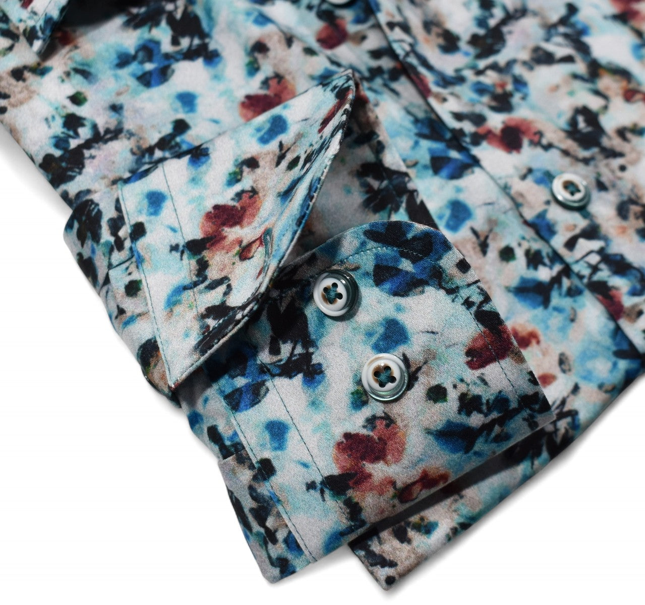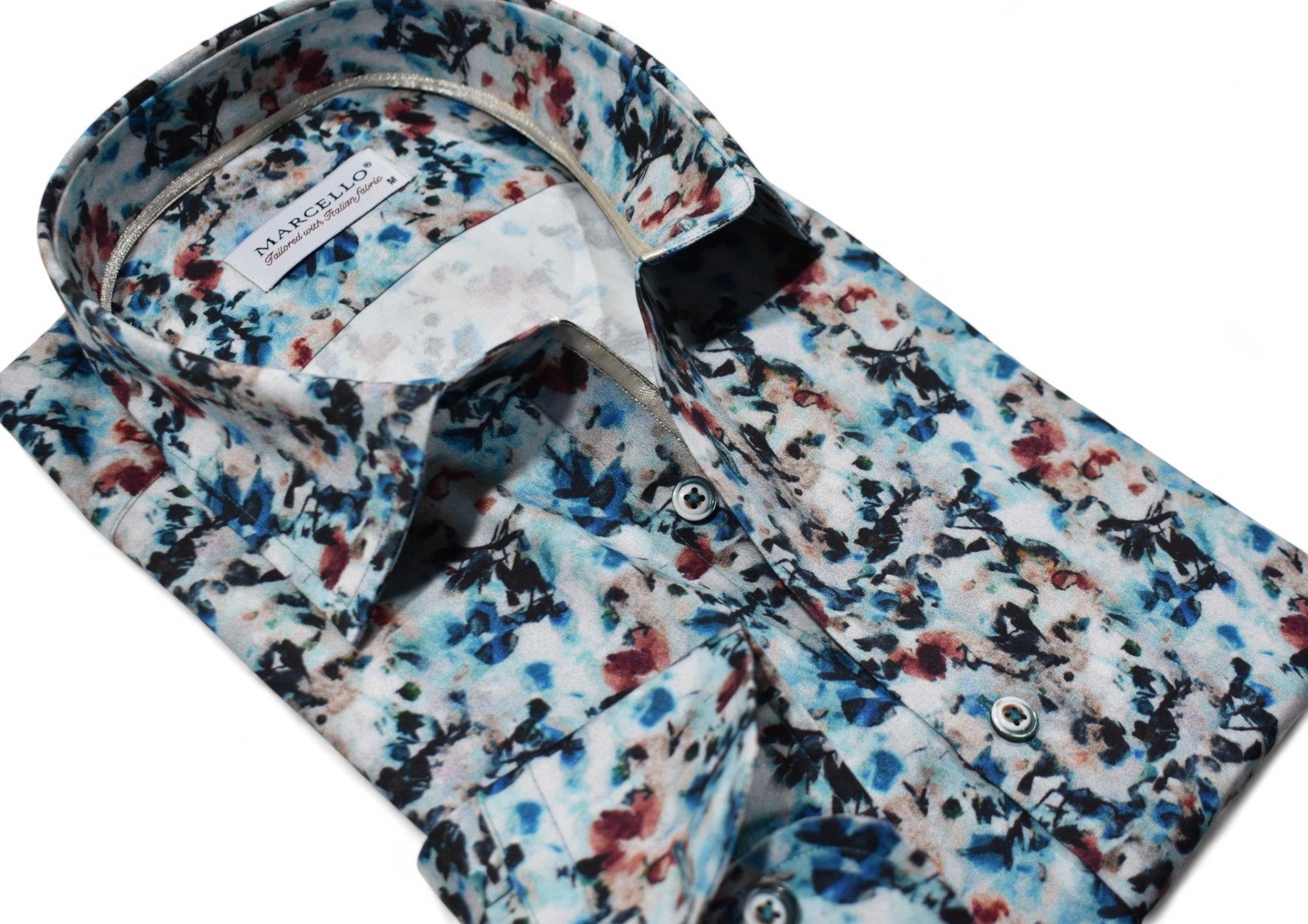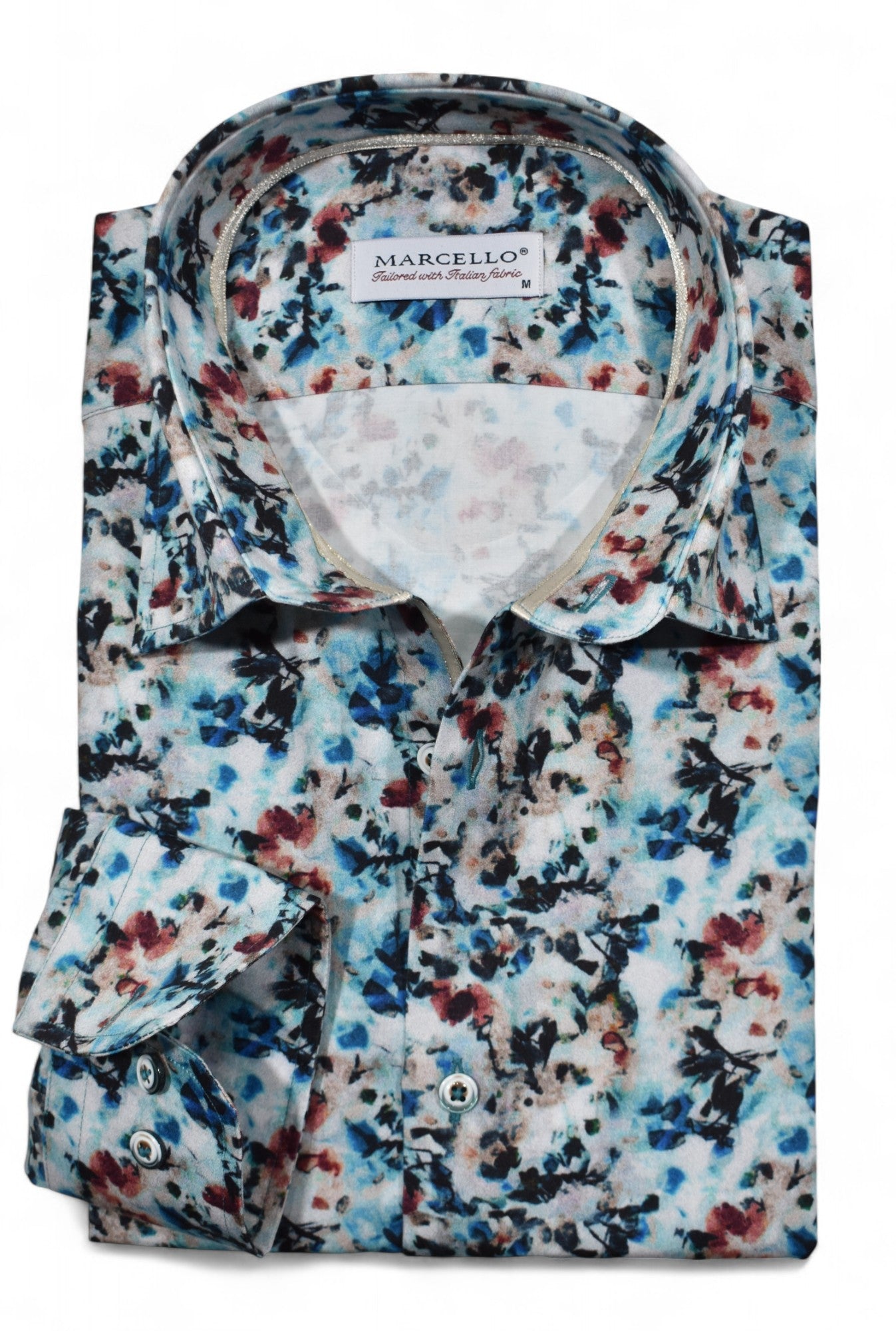 Marcello sport shirts feature a medium collar, neck band and edge placket taping. Trim fabrics and fashion prints add to the look. Premium cotton fabrics, custom hand selected buttons and coordinated stitch detailing. Classic shaped fit.